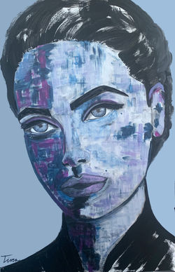 ![]() Nirmala 100x100cm Elle vient d'une famille de l'est, celles qui ont survécu aux trains. Elle nous dit de ne pas oublier que chaque être a un chemin de vie et qu'il marque à jamais notre destinée. | ![]() Jade 100x100cm Vendu | ![]() Opale 100x100 Cette oeuvre je 'lai faite pour ma Grand-mère qui avec ce port de tête, cette élégance et dans le regard le poids d'une société qui ne laissait que si peu de place aux femmes |